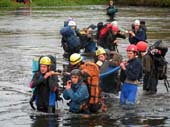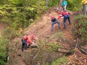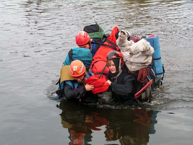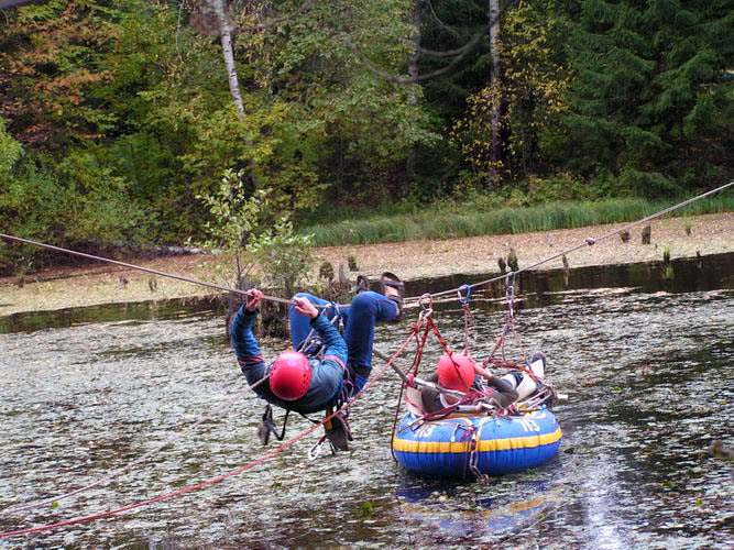 Много водных препятствий. Участникам то и дело приходилось переправляться с одного берега реки на другой, повезло обладателям прочных и удобных плавсредств. Мало приятного в осеннем купании. Один из этапов состоял в том, что нужно было спустить страдальца с моста на плавсредство, которое пристраховывалось к протянутой предварительно переправе.